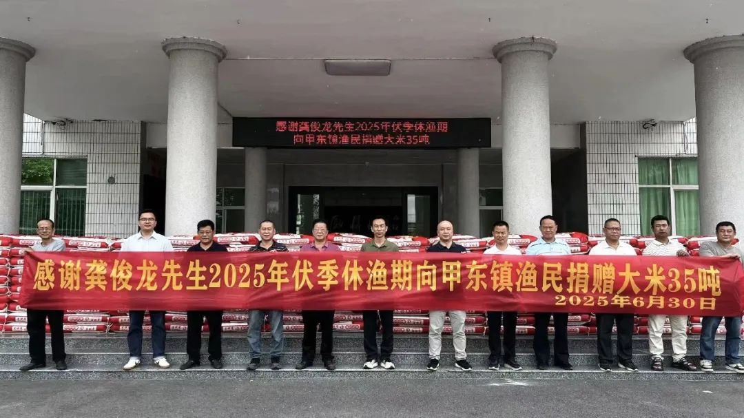 2025年6月30日,在第16个“广东扶贫济困日”之际,龚俊龙先生再次向甲东镇伏季休渔期的贫困渔民群众捐赠大米35吨,帮助贫困渔民群众解决生活实际困难。此次捐赠活动惠及469艘乡镇船舶、1300多个家庭。