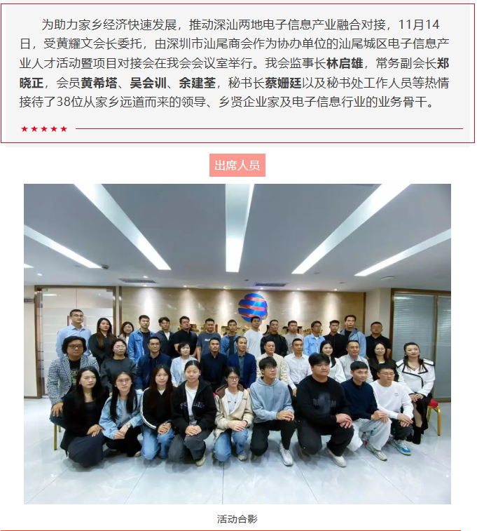 深圳市汕尾商会顺利举办汕尾城区电子信息产业对接会