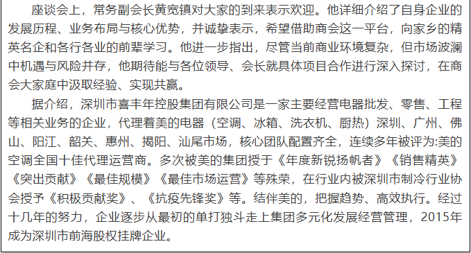 商会组织走访常务副会长单位——深圳市喜丰年控股集团