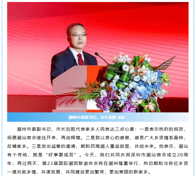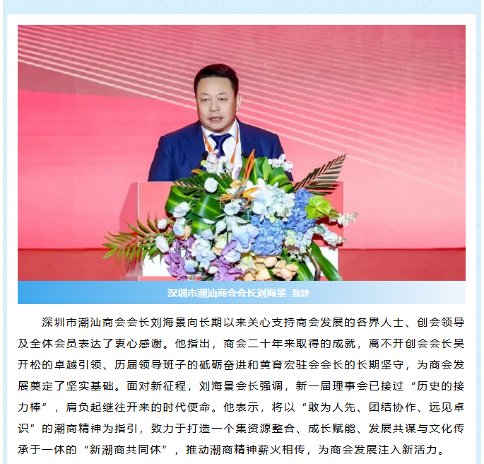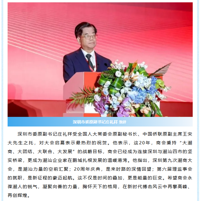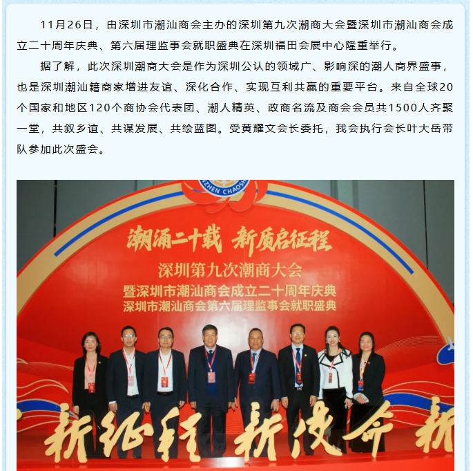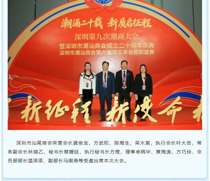 我会领导受邀出席深圳第九次潮商大会暨深圳市潮汕商会成立二十周年庆典、第六届理监事会就职盛典
