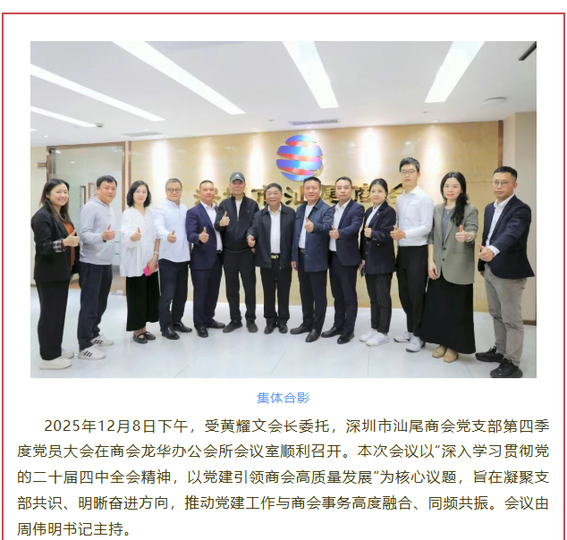 深圳市汕尾商会党支部召开第四季度党员大会