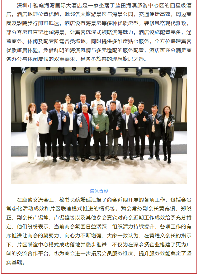商会组团走访副会长单位——深圳市雅庭海湾国际大酒店管理有限公司