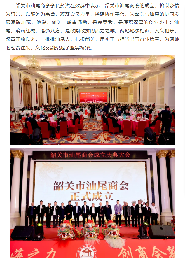 我会代表受邀出席韶关市汕尾商会成立庆典大会