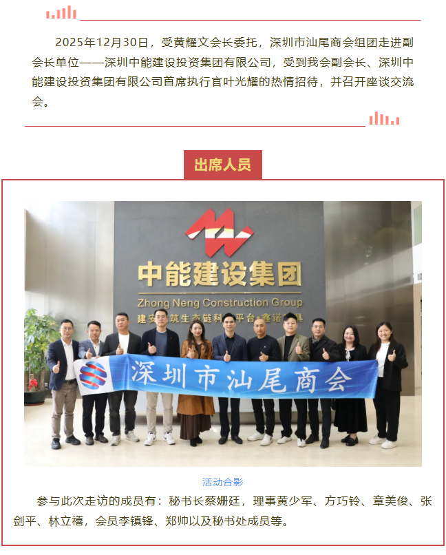>>商会组团走访副会长单位——深圳中能建设投资集团有限公司