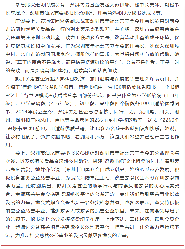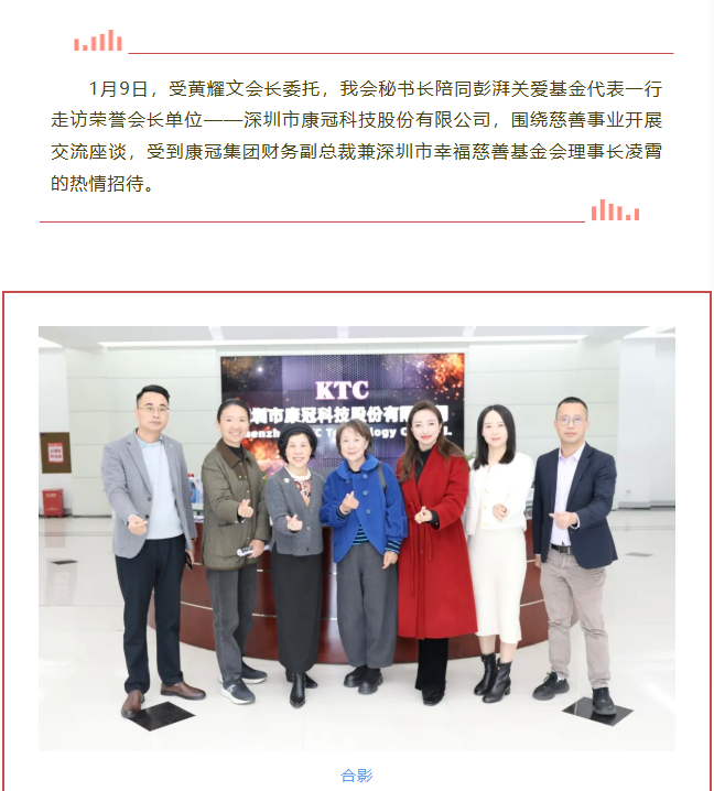 我会秘书长陪同彭湃关爱基金代表一行走访荣誉会长单位——深圳市康冠科技股份有限公司