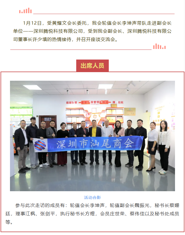 >>我会轮值会长李坤声带队走访副会长单位——深圳腾悦科技有限公司