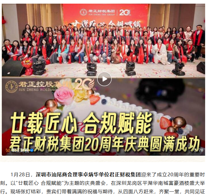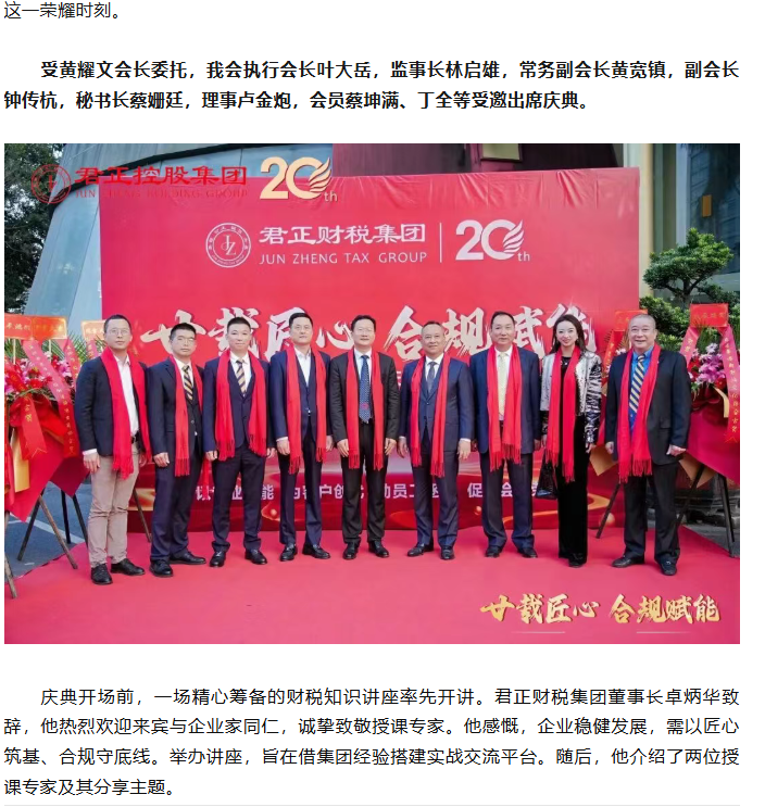 我会领导代表受邀出席深圳君正财税集团20周年庆典