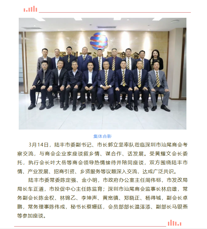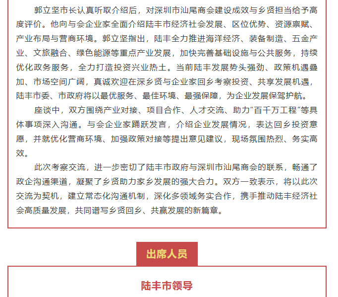 >>陆丰市市长郭立坚一行莅临深圳市汕尾商会考察交流 深化乡贤联动 共促陆丰高质量发展
