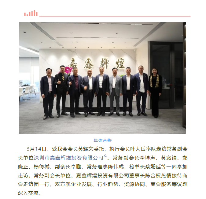 >>赋能促发展 携手共新篇——走访常务副会长单位深圳市嘉鑫辉煌投资有限公司