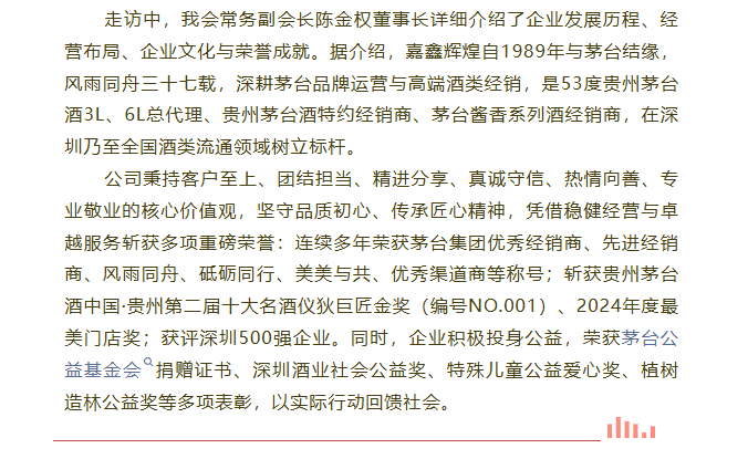 赋能促发展 携手共新篇——走访常务副会长单位深圳市嘉鑫辉煌投资有限公司