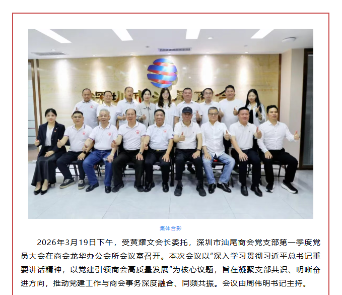 >>深学细悟强思想 笃行实干谱新篇|深圳市汕尾商会党支部第一季度党员大会顺利召开