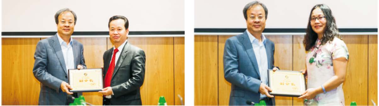 卢会长给副会长邱梓桑颁牌 卢会长给副会长周雪红颁牌